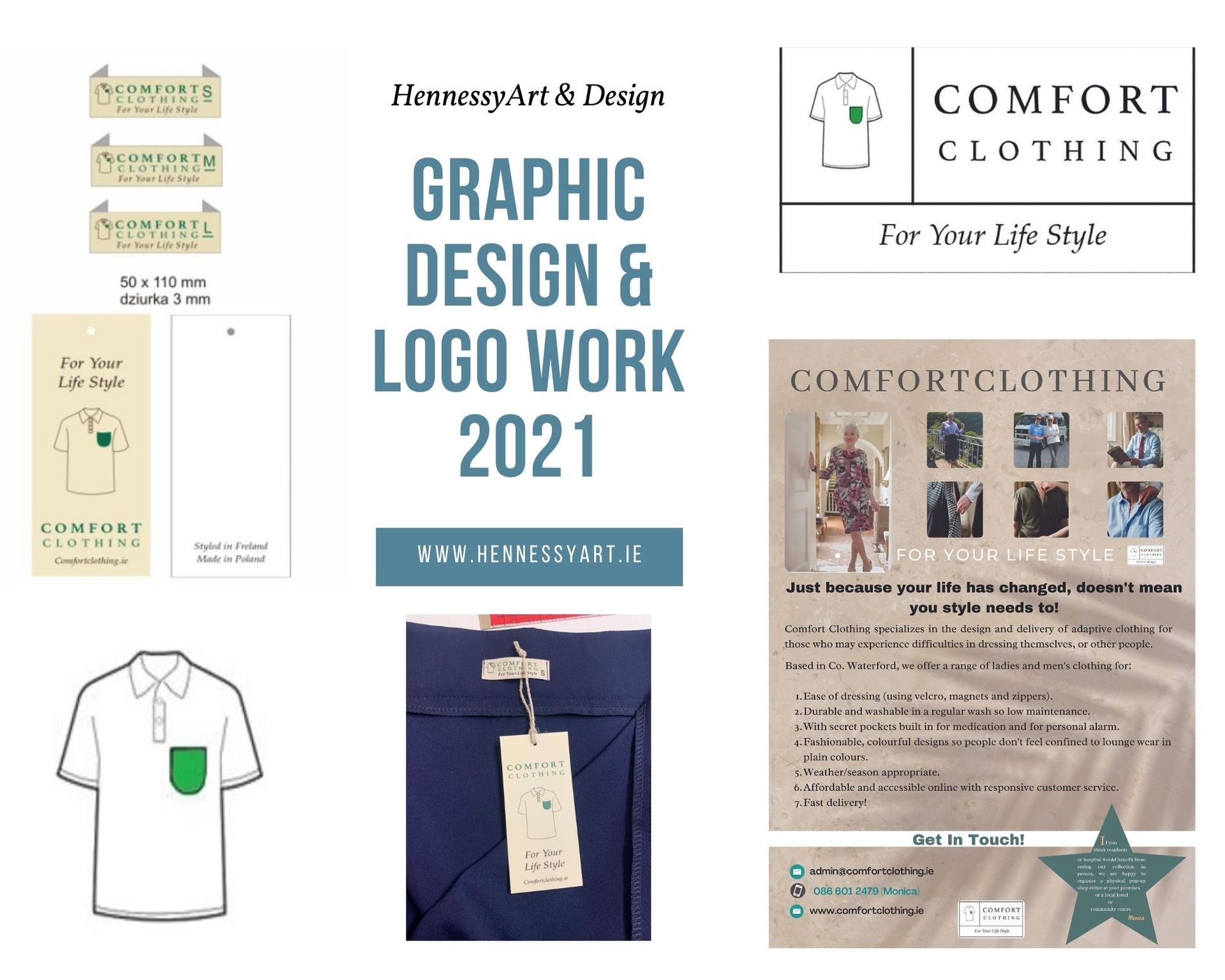 For this project, the logo/brand was focussed around a clothing item in connection with clothing for people with reduced mobility and to run the logo colour througout the branding.
